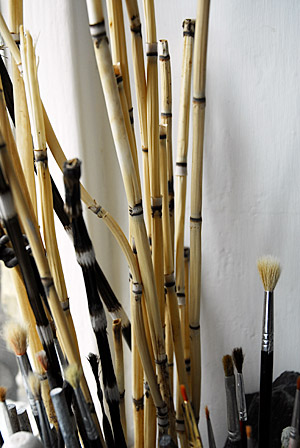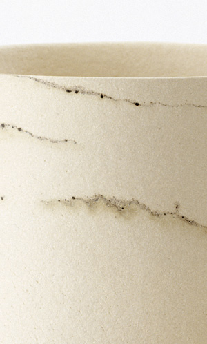“Form pared down to the essential, containment of deep space, and breathtaking balance: this is Lee at her best. A taut and potent beauty stops us in our tracks.”There is something of the scientist, the naturalist and the anthropologist in Lee. She is energised by the prospect of new discoveries and compelled to meticulously record her findings for future reference. Some of her oxide-impregnated clays have been laid down for as long as eighteen years, and, when worked and fired, result in visual effects that contrast radically to those produced by the same mix used after only two years. Collector of natural objects, she has built up an extensive cabinet of curiosities and willingly shares her fascination for tiny discarded beetle shells, almost weightless bird bones, and a pale rock from the Mojave Desert slowly disintegrating into powdery granules. Here are the dried, banded stems of Equisetum, there a clutch of striped porcupine quills found on walks in the Tuscan hills. On my recent visit, she enthused over a newly acquired book of woven yucca sandals of the Anasazi, enthralled to discover the trace of feet in these ancient fragments. Lee captures the ephemeral in her pots, fixing the developing clay through firing, and making permanent the illusion of fugitive effects such as shimmering light and wispy vapour.
