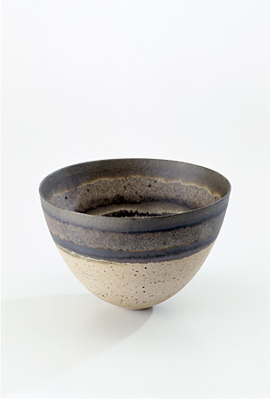 Because Lee's pots appear to have evolved subtly, almost imperceptibly over twenty years, we may be surprised to see from early photographs how different they once looked. Asymmetric silhouettes, strongly evocative of the human torso, prevailed; while edges were ripe for exploration, becoming flared, ridged, tilted or flattened into a narrow shelf. Her latest pots are predominantly symmetrical, their rims horizontal and elegant. Form pared down to the essential, containment of deep space, and breathtaking balance: this is Lee at her best. A taut and potent beauty stops us in our tracks.
