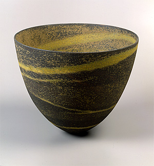 At a period when stylistic pluralism is rampant and all sorts of elaborate, mannerist, funky, or eccentric ceramic objects - often overdecorative or excessively colored - are presented under the banner of “studio pottery,” the serene presence of Lee's pots stands out in strong contrast. This should not suggest they are somehow stark; they have a contained warmth. But they are restrained. They are certainly neither pretentious nor self-conscious. They seem to deal with essentials. They dare to seem quite simple - vessels springing up with scrupulous, taut profiles from very small, even hidden, bases. They are sometimes bowls wide open to the air, sometimes taller containers with gourd-like bellies, whose elliptical contours change angle higher up their form, like a subtly articulated joint.