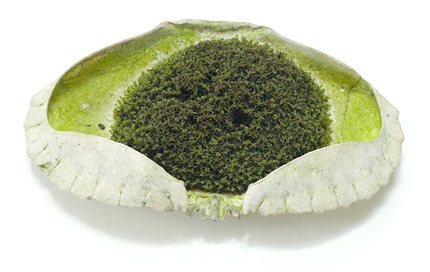 “It is a mistake to talk of the artist looking for his subject. In fact the subject grows within him like a fruit and begins to demand expression.” Andre TarkovskyTapies' fascination for the crumbling disrupted surfaces of graffiti-defaced walls, and his use of commonplace and discarded substances for his art, may not immediately strike the viewer as likely to appeal to Lee's fine sensibility. Her pots are images of vital structure rather than ruin, evidence of formation, not deformation. Furthermore, she quotes Andrei Tarkovsky (a potter inspired by a filmmaker): “It is a mistake to talk of the artist looking for his subject. In fact the subject grows within him like a fruit and begins to demand expression” - a positive, subjective, natural development. And yet - one of the somewhat paradoxical tensions that I suspect go to make Lee's work so subtly authentic - she lists categorically among her “interests and concerns”: “decay, corrosion, erosion - be it rusting metals, lichen, aging of wood/rock etc., decrepit walls. The visible evidence of decay around us. Rather in the pots - encapsulating a moment of decay.”