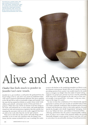 Claudia Clare, ‘Alive and Aware’, Ceramic Review, issue 231, p3, 54-57, May/June.