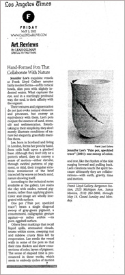 Leah Ollman, ‘Hand-Formed Pots that Collaborate with Nature’, Los Angeles Times, May 3rd.